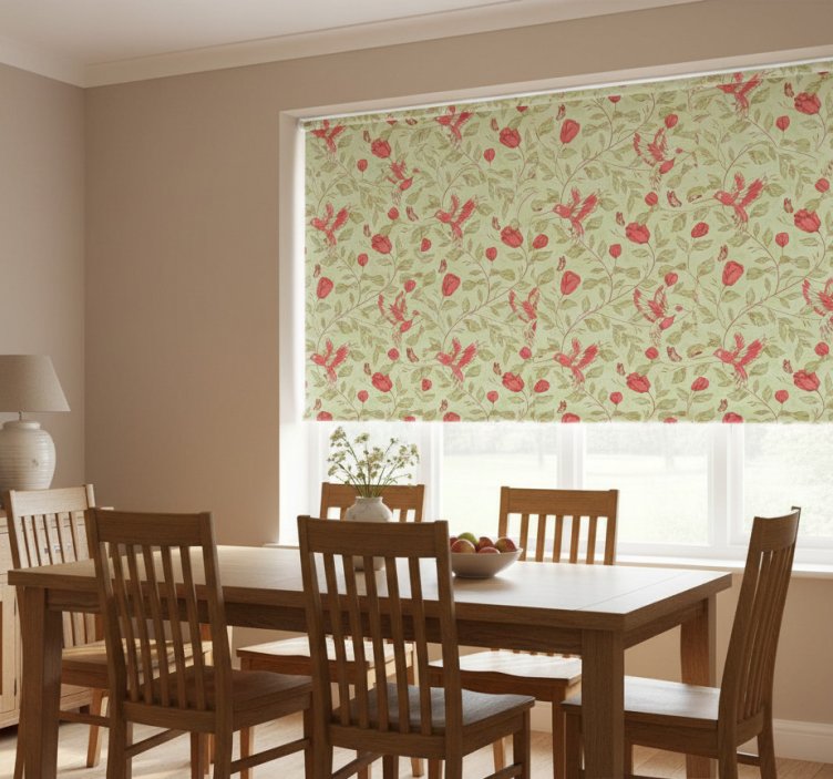 Reference: E6618Transform your space with our Dining room roller blind with red tulips pattern, a stunning design that features vibrant red tulips blooming against a soft backdrop. This elegant roller blind adds a touch of nature to your home, effortlessly blending beauty with functionality. With its easy assembly in just two clicks, simple cleaning process, and quick disassembly, it not only enhances your room's décor but also makes maintenance a breeze! Additionally, it protects your room from direct sunlight while providing the perfect level of privacy when lowered. The Dining room roller blind with red tulips pattern also helps regulate the room temperature and adds an extra layer of security, allowing you to see outside without being seen.