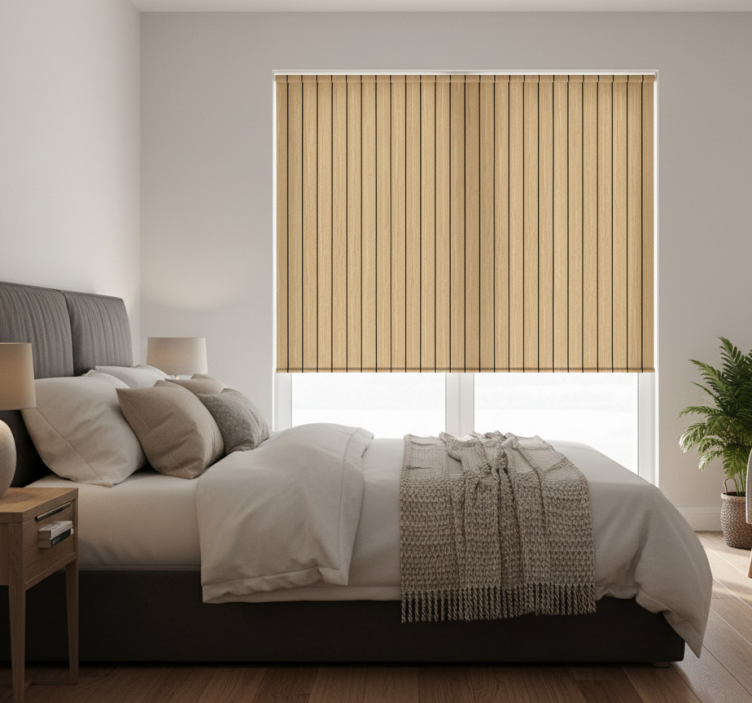 Reference: E8234Transform your living space with our Elegant roller blind with vertical wood slats, a perfect blend of style and functionality. This stunning design features a sleek appearance that enhances any interior decor, featuring easy assembly in just two clicks, effortless cleaning, and a customizable fit. With the ability to regulate room temperature and provide privacy while allowing light to filter in, this roller blind is not just a window treatment but a statement piece!