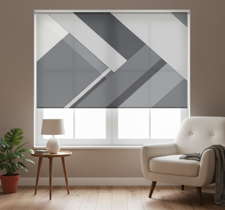 Gray roller blind in geometric grey pattern