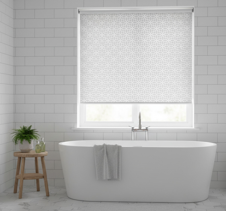Gray roller blind with a contemporary pattern