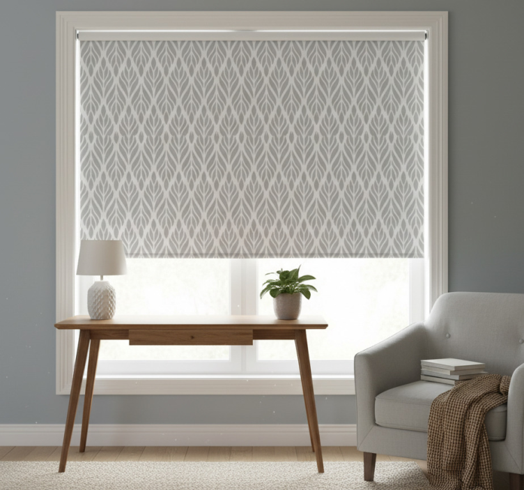 Gray roller blind with ethnic floral grey pattern