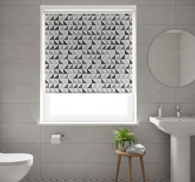 Gray roller blind with geometric triangles design