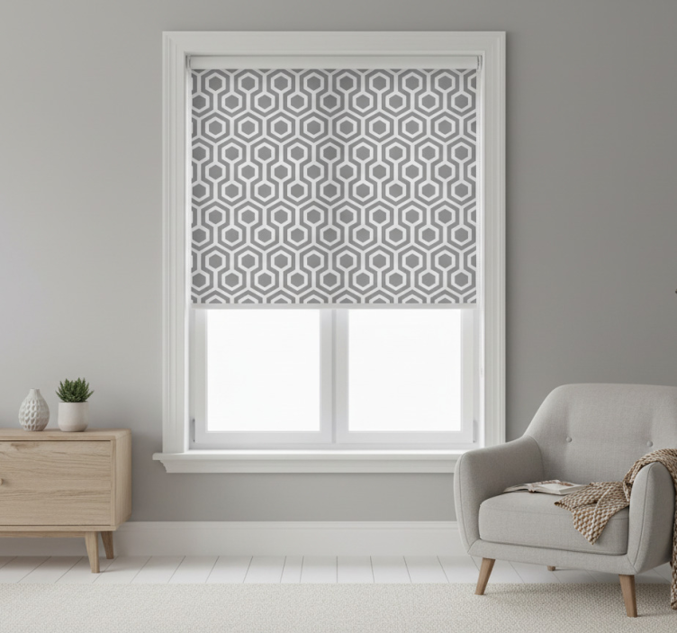 The Gray roller blind with hexagonal grey pattern gray roller blind is not only a functional window treatment but also a stylish decor element that enhances your interior design. Imagine a space where elegance meets utility! This roller blind seamlessly blends with various decor styles, making it the perfect choice for anyone looking to elevate their home’s aesthetic. Its sophisticated hexagonal design adds visual interest and depth, making your windows a focal point. Whether you're redecorating or simply refreshing a room, this roller blind inspires creativity and transforms your environment into a stylish sanctuary.