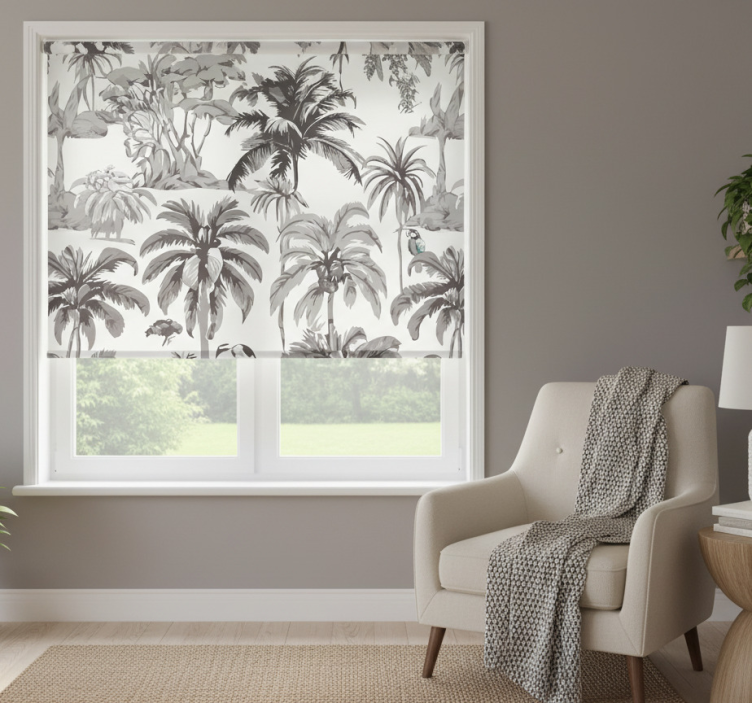 Gray roller blind with palm trees design
