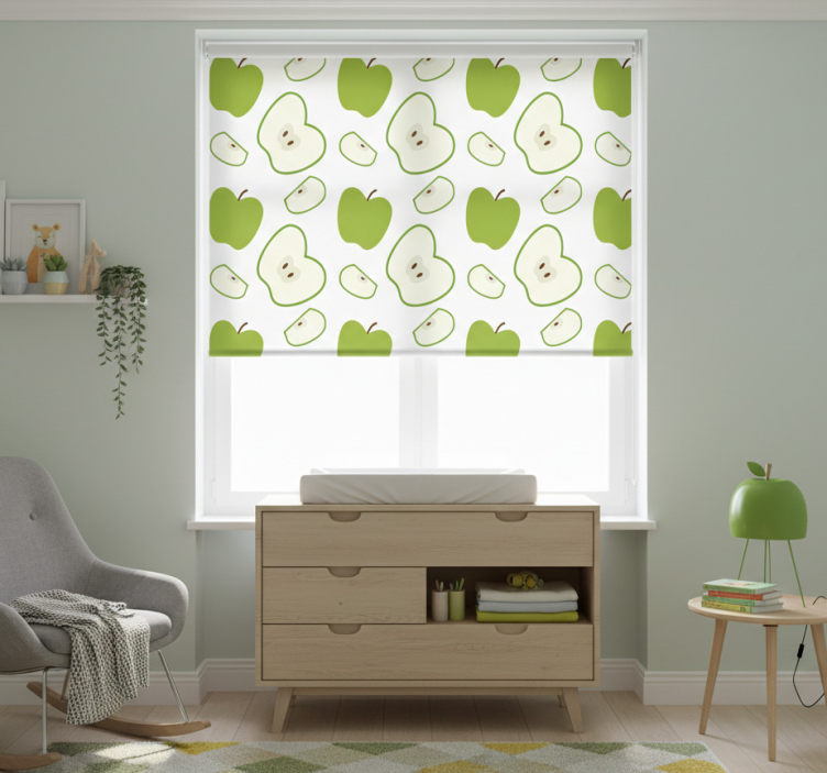 The Happy green apples children room roller blind is the ideal choice for enhancing your child's room decor. Its lively design serves as a wonderful focal point, inspiring creativity and joy in your child’s environment. This roller blind invites warmth and cheerfulness, making the room feel inviting and playful. With its ability to harmonize with various themes, it not only beautifies the space but also creates a comfortable atmosphere where imagination can flourish!