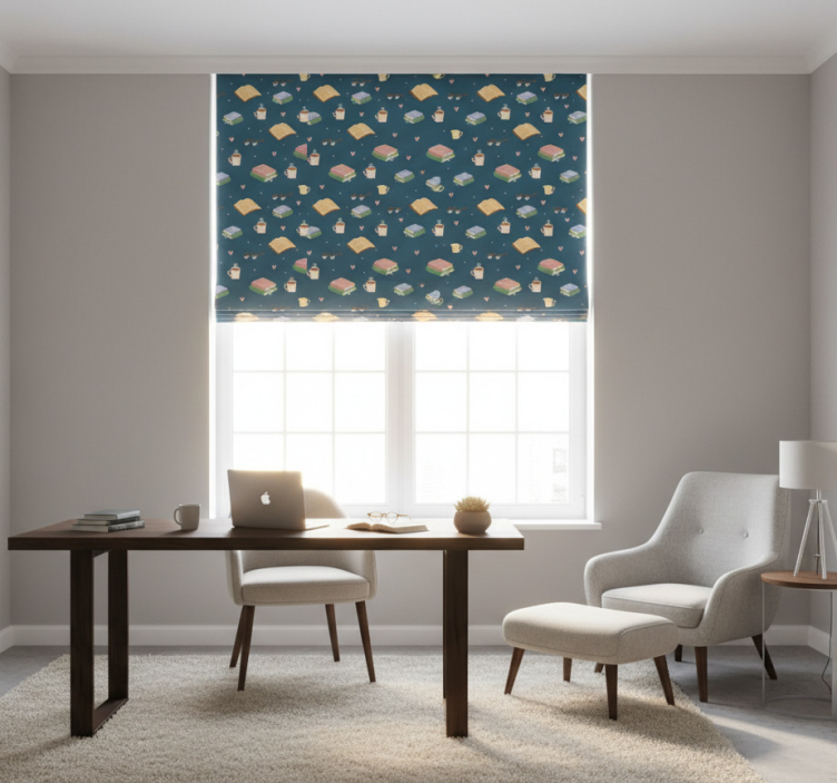 Home office roller blind cozy reading design
