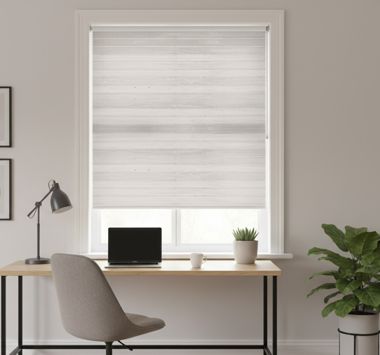 Home office roller blind gray rustic wood design