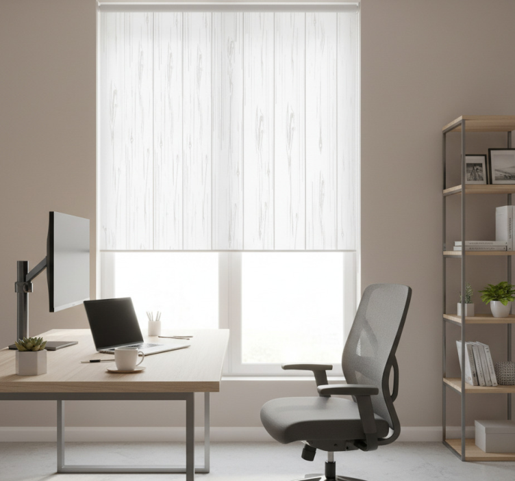 Home office roller blind in white wood texture rustic