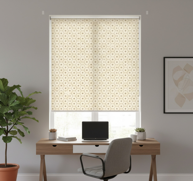 Home office roller blind with abstract hexagon pattern