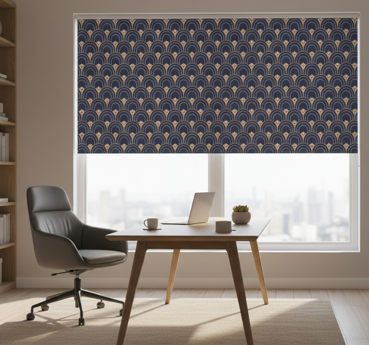 Home office roller blind with elegant fan design