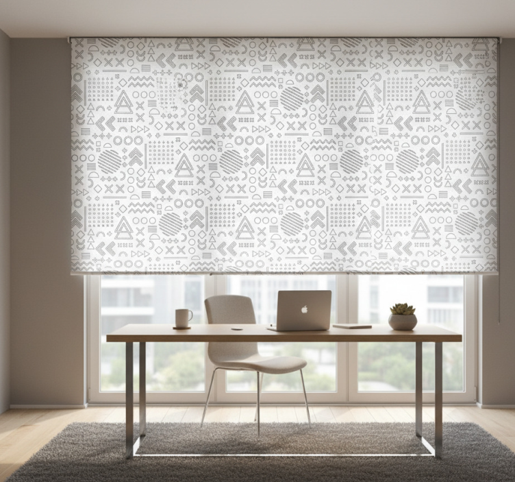 Home office roller blind with geometric sketches pattern