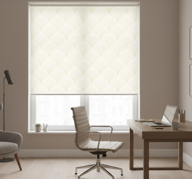 Home office roller blind with ginkgo leaf design