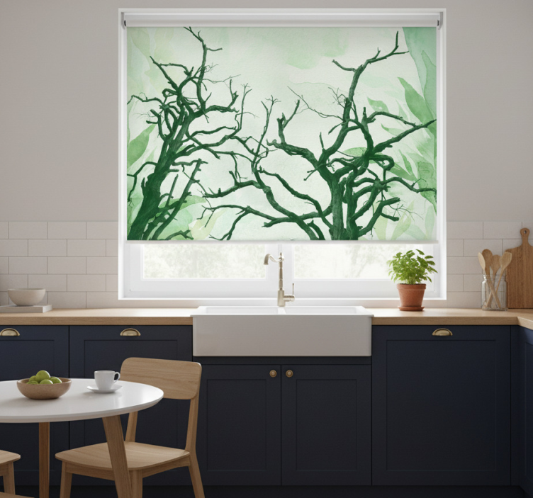 The Kitchen roller blind beautiful tree canopies in the forest kitchen roller blind is more than just a window treatment; it’s a statement piece that enhances your kitchen's ambiance. Imagine the peaceful atmosphere created by the beautiful imagery of tree canopies, inviting a sense of calm and relaxation into your cooking space. This roller blind not only elevates your decor but also serves functional purposes like temperature regulation and privacy, making it an ideal choice for any home.