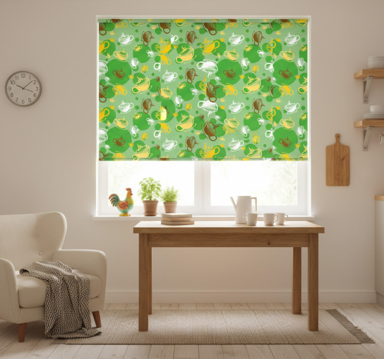 The Kitchen roller blind coffee cup collection kitchen roller blind is a delightful way to elevate your kitchen decor. Its charming coffee cup motifs evoke warmth and inviting atmospheres, making your kitchen feel like the heart of your home. Not only does it provide a unique touch, but it also protects against direct sunlight while allowing you to enjoy your coffee moments in peace. This roller blind enhances your interior design while offering functionality, making it a must-have for any stylish kitchen!
