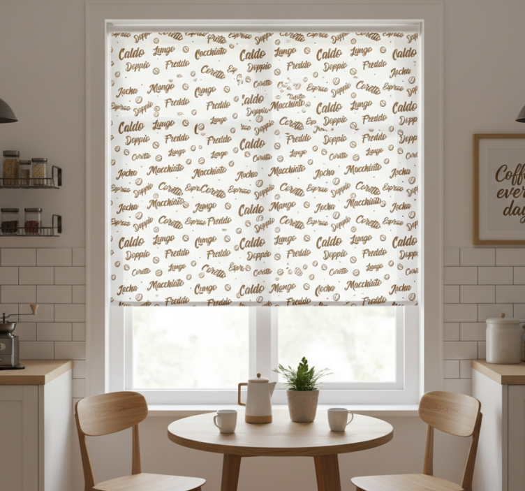 The Kitchen roller blind coffee every day kitchen roller blind is not just a window covering; it's a statement piece that enhances your kitchen’s aesthetic. Imagine your kitchen bathed in soft, filtered light, with a design that inspires warmth and coziness every day! This roller blind complements various styles, from modern to rustic, making it an ideal choice for every home. Let it serve as a focal point that draws admiration from family and guests alike, enriching your living space with its charming appeal.