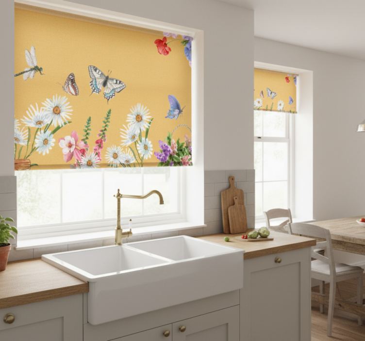 The Kitchen roller blind daisy flower and butterflies kitchen roller blind is perfect for adding a lively touch to your home decor! Imagine brightening up your kitchen with this charming design that seamlessly blends beauty and practicality. Whether you're hosting a gathering or enjoying a quiet meal, this roller blind creates an inviting ambiance that inspires creativity and joy. Elevate your decor with this delightful piece that reflects your unique style!