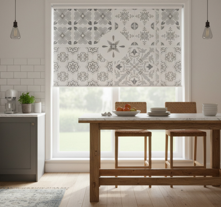 The Kitchen roller blind grey mosaic tiles design kitchen roller blind is more than just a window covering; it's an inspirational addition that transforms your kitchen into a stylish haven. Imagine cooking in a space that reflects your personality and taste! This roller blind adds a contemporary flair while providing the essential functionality of blocking out direct sunlight. Its elegant design complements various interior styles, ensuring that your kitchen not only looks fantastic but also feels inviting and warm.