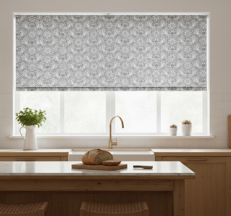 Transform your space with our Kitchen roller blind in abstract arabic tile style kitchen roller blind. This unique piece is perfect for adding a touch of elegance and sophistication to any kitchen. The vibrant patterns create a captivating focal point that inspires creativity and warmth in your cooking area. Embrace the beauty of cultural artistry while enjoying the benefits of light regulation and privacy!