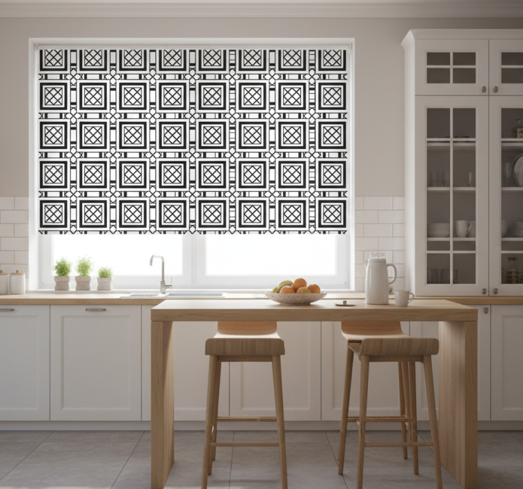 The Kitchen roller blind in black hydraulic tile style kitchen roller blind is the perfect decorative element for your kitchen! Its stylish design not only enhances the overall aesthetic but also serves functional purposes. This eye-catching roller blind can transform a mundane window into a focal point, adding character and charm to your space. Imagine cooking or entertaining guests with a bold design that sparks conversation! Elevate your home decor and experience the perfect blend of style and functionality.