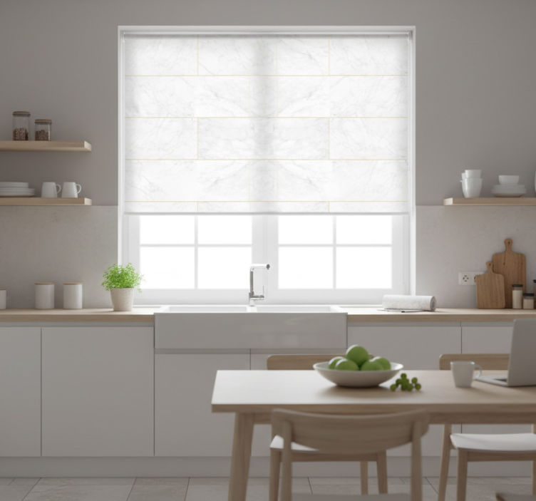 Installing the Kitchen roller blind in gray tones with gold marble kitchen roller blind is a simple process that takes just moments. With an easy two-click assembly, you can enjoy your new blind in no time! Follow the straightforward instructions included, and transform your kitchen space effortlessly.