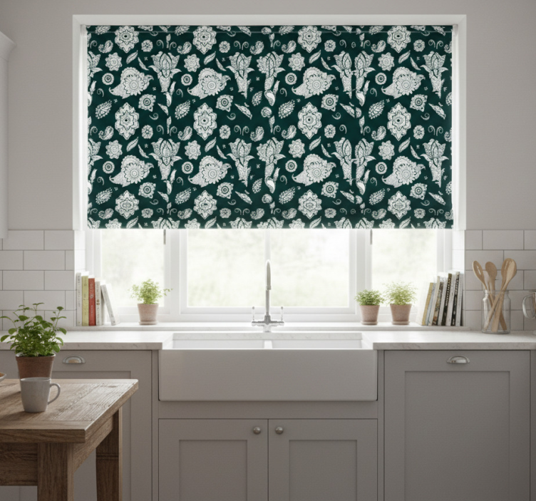 The Kitchen roller blind in indian paisley design kitchen roller blind is an exquisite addition to any kitchen, effortlessly blending functionality with style. Its unique paisley pattern infuses warmth and character into your space, inspiring creativity and joy. When lowered, it provides privacy while allowing natural light to filter through, creating an inviting atmosphere perfect for cooking and gathering. Let your kitchen reflect your personal style with this beautiful roller blind!
