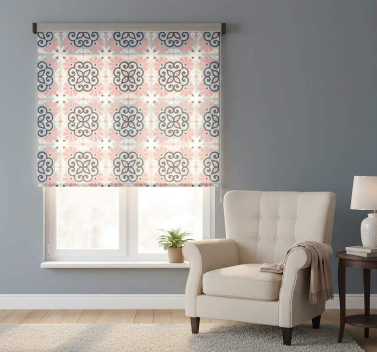 Reference: E8412Transform your living space with our stunning Kitchen roller blind in mandala tile design, featuring intricate mandala patterns that bring a touch of artistry and elegance to your home. This roller blind is not only visually appealing with its vibrant colors and detailed tile motifs but also practical, offering easy assembly in 2 clicks, effortless cleaning, and quick disassembly for hassle-free maintenance. Additionally, it provides effective protection against direct sunlight, enhances privacy when lowered, and helps regulate room temperature while ensuring the security of your home.