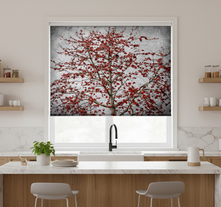 Transform your kitchen into a cozy retreat with the Kitchen roller blind minimalistic tree with red flowers kitchen roller blind. This charming window treatment not only elevates your decor but also creates a warm and inviting atmosphere. With its exquisite design, it acts as a focal point in your kitchen, bringing life and color to your space. Perfect for those who want to embrace a natural look, this roller blind beautifully complements various interior styles, making it an essential decorative element!