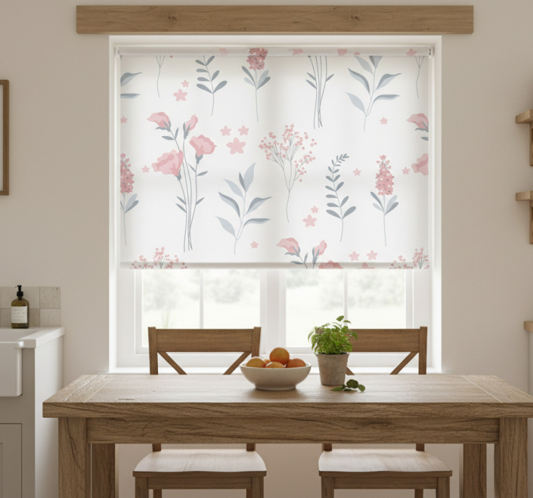 Reference: E6391Transform your living space with our Kitchen roller blind pink blossom flowers, featuring a delightful design of soft pink blossoms set against a serene backdrop. This exquisite roller blind not only enhances your home's aesthetic but also serves practical purposes with its easy assembly and disassembly in just 2 clicks. Enjoy the benefits of a cleaner window area while adding a touch of elegance to your decor!