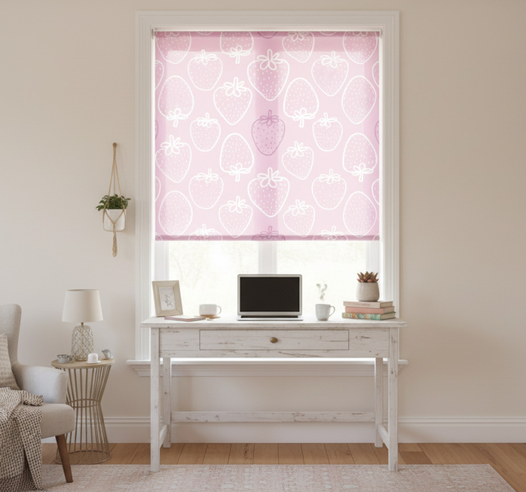 Reference: E8427Introducing our stunning Kitchen roller blind seamless pink strawberry pattern, featuring a delightful design that encapsulates the essence of freshness and joy! This vibrant roller blind showcases a seamless pattern of luscious pink strawberries that will instantly uplift your kitchen ambiance. With its easy assembly and disassembly, this roller blind not only beautifies your space but also provides practical benefits like regulating room temperature and enhancing privacy!