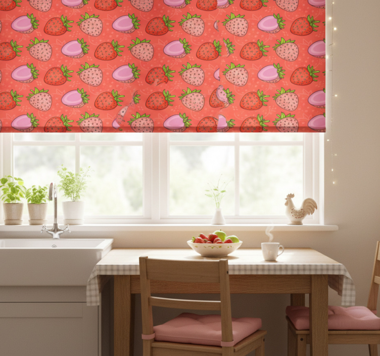The Kitchen roller blind seamless red and pink strawberries kitchen roller blind is not just a window covering; it's a statement piece that adds charm and character to your kitchen. Imagine the joy of cooking surrounded by the fresh, fruity vibes of this beautiful design! It effortlessly transforms your space, making it feel inviting and warm, while allowing natural light to filter through. This roller blind is perfect for those who wish to express their style and create a lively atmosphere in their home.