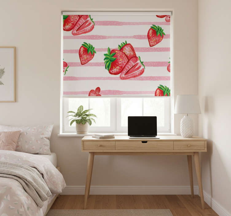 The Kitchen roller blind seamless strawberries stripes kitchen roller blind is an exceptional choice for decorating your home! Its playful design brings a fresh and inviting feel to your kitchen or dining area. By incorporating this roller blind into your home, you can instantly uplift your space, making it more cheerful and personalized. It's a perfect way to showcase your unique taste while ensuring a cozy ambiance for family gatherings or quiet dinners.