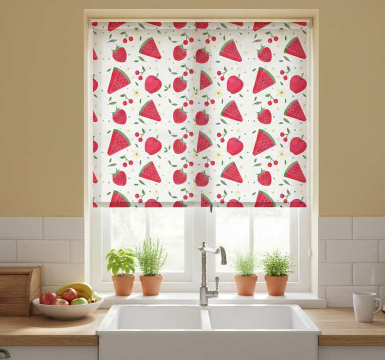 The Kitchen roller blind with assorted fruit pattern kitchen roller blind is not just a window covering; it's a statement piece that enhances your kitchen's ambiance. Imagine waking up to the sun shining through a beautiful blind that showcases your love for fresh produce! This roller blind adds a burst of color and creativity to the room, inspiring culinary adventures and joyful gatherings with family and friends.