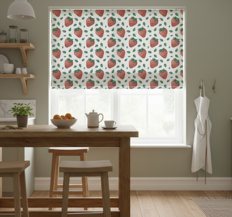 The Kitchen roller blind with bright juicy strawberries leaves kitchen roller blind is perfect for adding a splash of color and personality to your kitchen. Its cheerful design creates an inviting atmosphere, inspiring creativity while cooking and entertaining. The lively strawberries and leaves motif brings the outdoors inside, making your space feel more vibrant and alive. This roller blind not only elevates your decor but also enhances the overall ambiance of your kitchen!