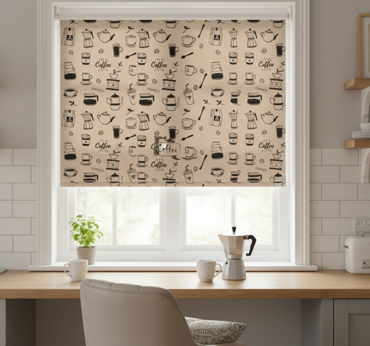 Transform your kitchen into a cozy café oasis with our Kitchen roller blind with coffee design kitchen roller blind! This eye-catching decor piece not only enhances your kitchen's aesthetic but also creates a warm and inviting atmosphere. Imagine sipping your morning coffee while enjoying the view of this beautifully designed roller blind, perfectly complementing your home. It's an inspiring choice that blends practicality with style, making your kitchen feel more vibrant and enjoyable.