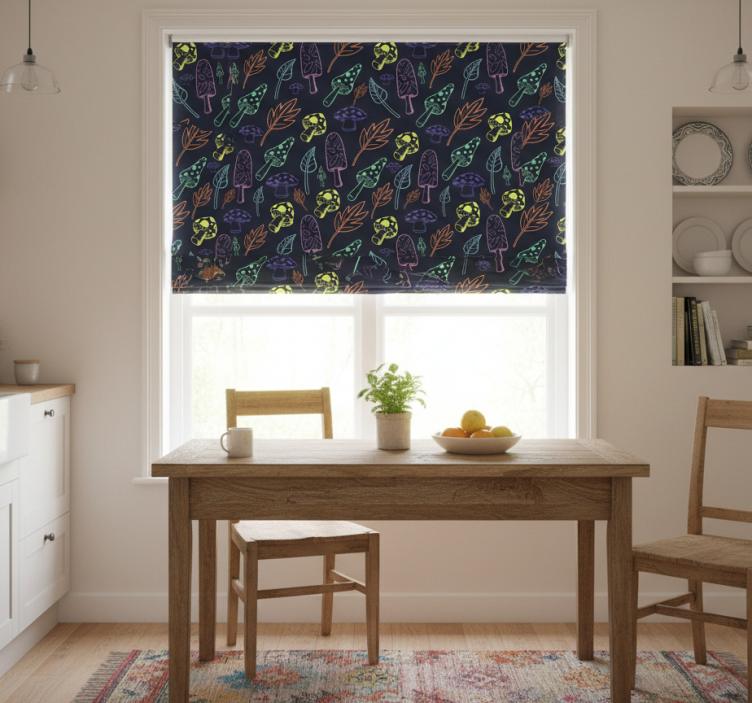 Transform your kitchen into a joyful space with the Kitchen roller blind with colorful mushrooms pattern kitchen roller blind. This eye-catching design serves as a focal point, inspiring creativity and warmth in your cooking area. It beautifully complements your decor while providing essential functionality, ensuring that your kitchen is both stylish and inviting.