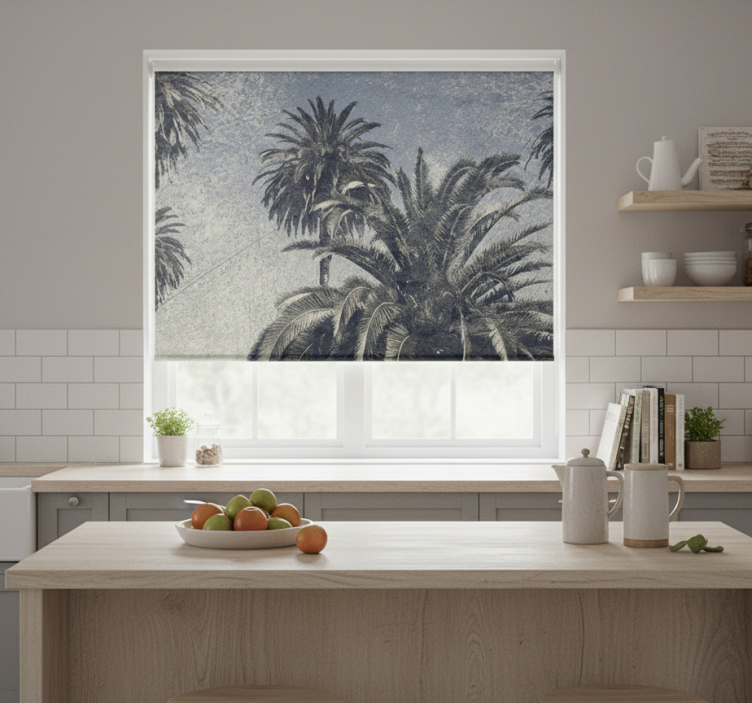The Kitchen roller blind with gray palm tree design kitchen roller blind is the perfect addition to elevate your interior decor. Its chic design adds a touch of sophistication and modernity, making it an inspirational choice for anyone looking to enhance their kitchen's vibe. Imagine cooking in a space where elegance meets comfort, creating an inviting atmosphere for family and friends!