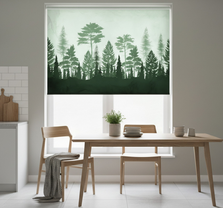 Reference: E8322Transform your space with our Kitchen roller blind with green scandinavian trees. This stunning design features a captivating array of lush green Scandinavian trees, offering a fresh and organic aesthetic that seamlessly enhances any kitchen decor. The intricate graphics evoke a sense of tranquility, making it an ideal choice for those looking to create a serene ambiance in their home.