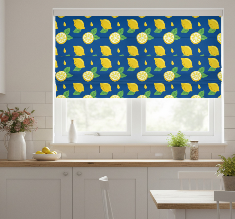 The Kitchen roller blind with hand-drawn lemons kitchen roller blind is an enchanting way to enhance your kitchen's ambiance. Imagine the warmth and vibrancy it brings, transforming an ordinary space into a lively and inviting atmosphere! This roller blind not only elevates the aesthetic appeal but also serves as a functional piece that complements your kitchen's decor. The cheerful lemon design is perfect for adding a touch of freshness, making it an inspirational choice for anyone looking to revitalize their home.