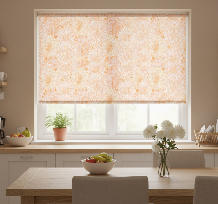 The Kitchen roller blind with lots of white dahlia texture kitchen roller blind is an exquisite choice for anyone looking to elevate their home decor. Imagine transforming your kitchen into a serene sanctuary with this beautiful roller blind! Its delicate dahlia design not only adds a splash of color but also brings a sense of tranquility and warmth to your space. Whether you are hosting a dinner party or enjoying a quiet morning coffee, this roller blind sets the perfect atmosphere, making it a must-have for stylish and functional home decoration.
