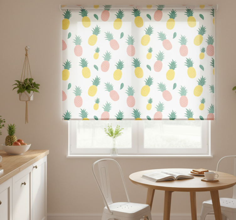 Embrace the charm of the Kitchen roller blind with pineapple fruit design kitchen roller blind as it effortlessly elevates your kitchen decor. This exquisite roller blind not only brightens your space but also reflects your personality, infusing joy and creativity into your home. With its playful yet elegant design, it serves as the perfect backdrop for family gatherings and culinary adventures!