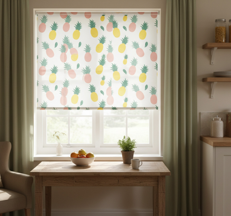 Kitchen roller blind with pineapple fruit pattern