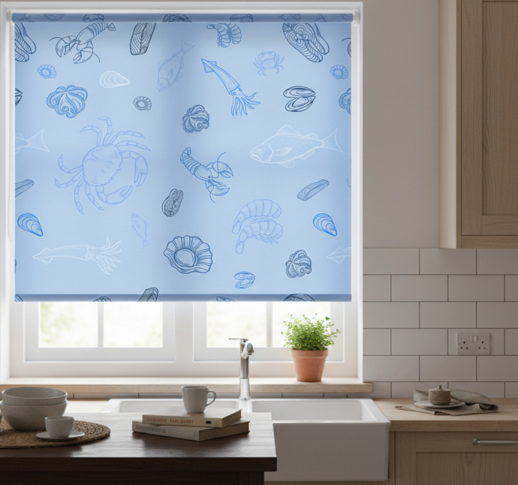 Kitchen roller blind with seafood design