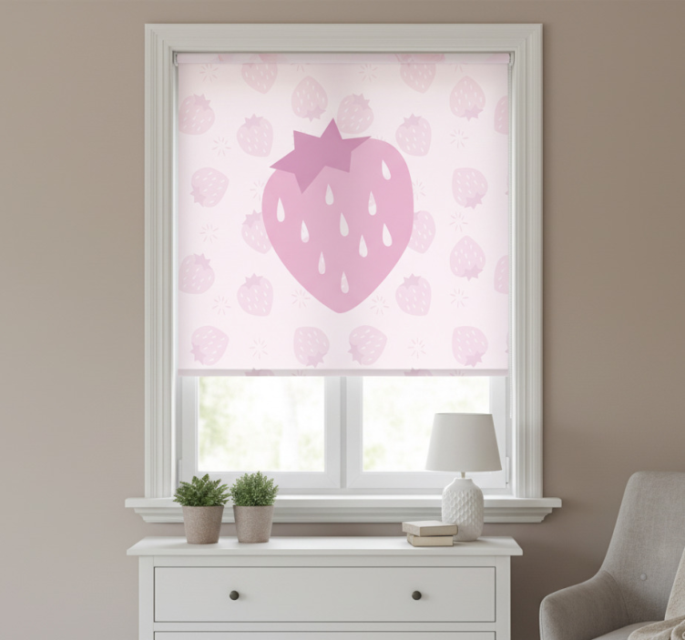 Enhance the ambience of your home with the Kitchen roller blind with strawberries pattern on pink kitchen roller blind. This vibrant design is more than a window covering; it's a statement piece that adds personality and cheer to your kitchen. Imagine the warmth and joy it brings as sunlight streams through, illuminating the playful strawberries while keeping your space stylish and functional. Perfect for creating a cozy atmosphere, this roller blind can also be customized to fit your unique style needs!