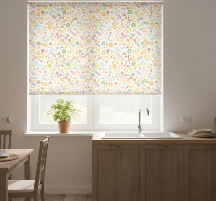 Reference: E6504Transform your living space with our Kitchen roller blind with traditional polish flower design, a stunning blend of elegance and functionality. This beautifully crafted roller blind features intricate floral patterns that evoke the charm of Polish artistry, bringing a touch of tradition into your home. Its vibrant colors and detailed designs make it a standout choice for any kitchen, while its easy-to-clean material ensures that it remains a delightful addition for years to come.