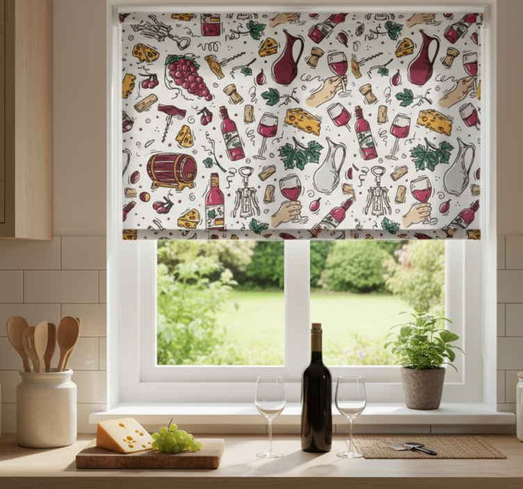 The Kitchen roller blind with vintage grapes wine cheese pattern kitchen roller blind is not just a functional item; it’s a statement piece that elevates your home decor! Imagine the charm it brings as it adorns your kitchen window, perfectly complementing your dining area and enhancing the overall aesthetic. Whether you're hosting a gathering or enjoying a quiet meal, this roller blind adds a touch of elegance and personality, ensuring your kitchen remains a delightful space for all occasions.