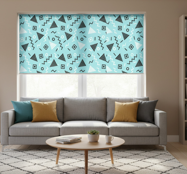 Living room roller blind 80s memphis pattern