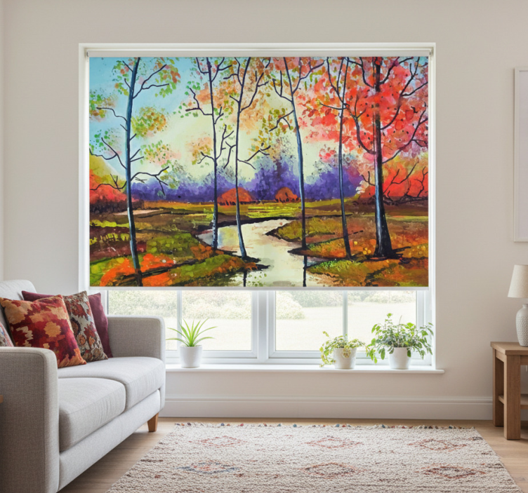 Living room roller blind colorful spring trees modern art