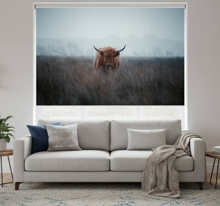 Reference: E8954Introducing our stunning Living room roller blind highland cow design, a unique blend of modern aesthetics and rustic charm! This beautiful roller blind features a delightful highland cow graphic that adds a touch of whimsy to your decor. With its vibrant colors, easy assembly in just two clicks, and simple cleaning process, it’s the perfect addition to elevate your living space. This design not only enhances your room's style but also offers practical benefits like protecting against direct sunlight and providing privacy when lowered!