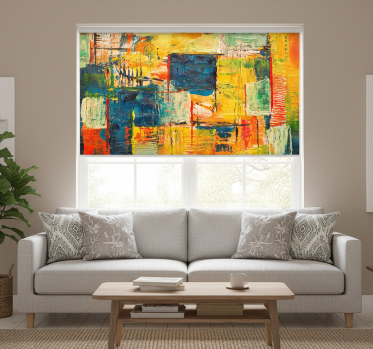 Living room roller blind in colorful mosaic