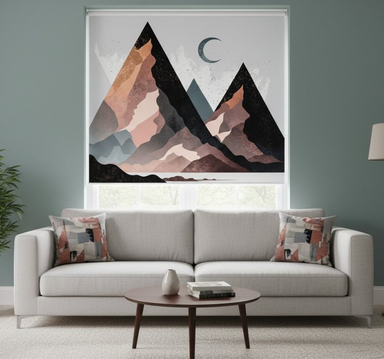 Reference: E8632Introducing our stunning Living room roller blind nordic geometric peaks, a perfect blend of style and functionality! This roller blind features a captivating geometric design that will elevate your living space while providing essential benefits. With easy assembly and disassembly in just two clicks, this product is designed for effortless cleaning and maintenance. It effectively protects your room from direct sunlight, offers privacy when lowered, and helps regulate room temperature. Plus, its 100% customizable measurements ensure a perfect fit for any window!